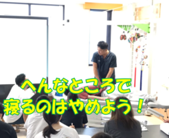 「へんなところで寝るのはやめよう!」