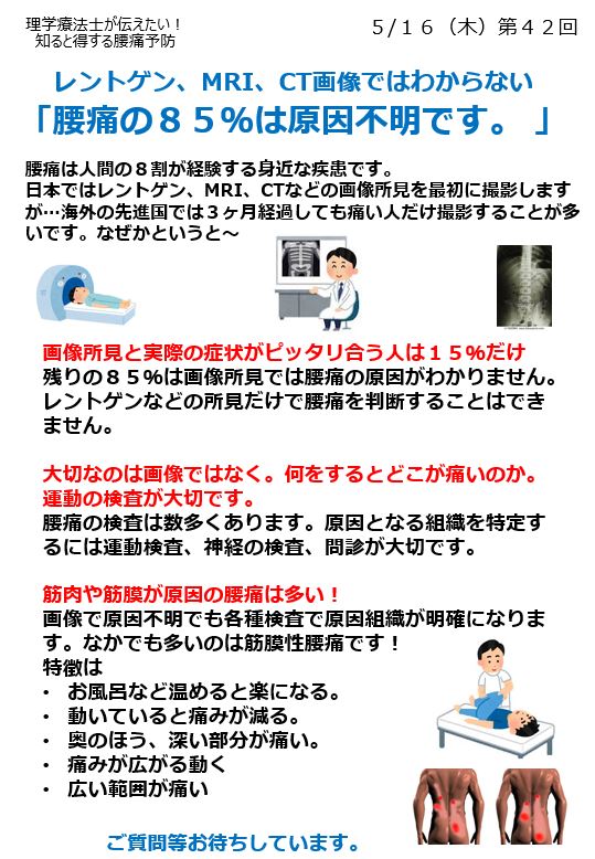 とにかくレントゲン、CT 、MRIでわからない85%の腰痛の原因を見つけるのは