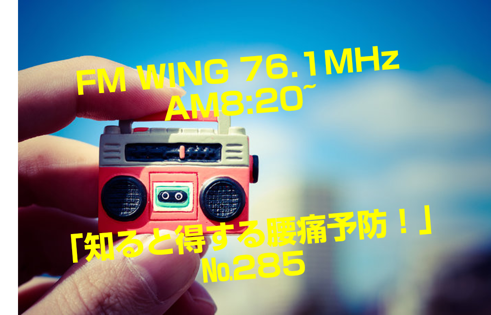 №285 FM WING 76.1MHz AM8:20~ 「知ると得する腰痛予防!」