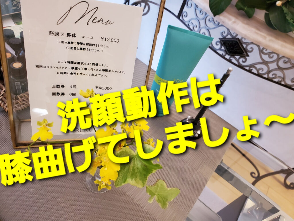 洗顔動作は膝曲げてしましょ〜